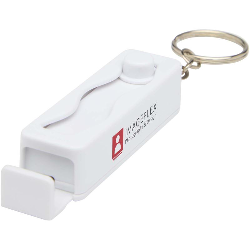 The Aggia is a fun and functional accessory made from recycled plastic. It combines a built-in phone stand with a fidget toy to help you stay relaxed and focused. Compact and easy to carry, it also comes with a keychain for everyday convenience.