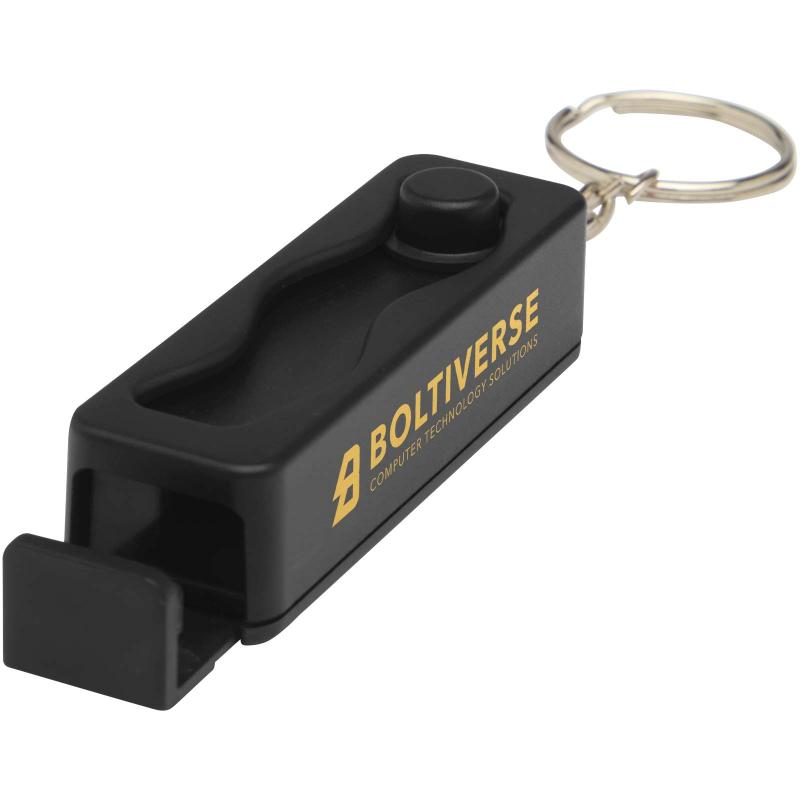The Aggia is a fun and functional accessory made from recycled plastic. It combines a built-in phone stand with a fidget toy to help you stay relaxed and focused. Compact and easy to carry, it also comes with a keychain for everyday convenience.