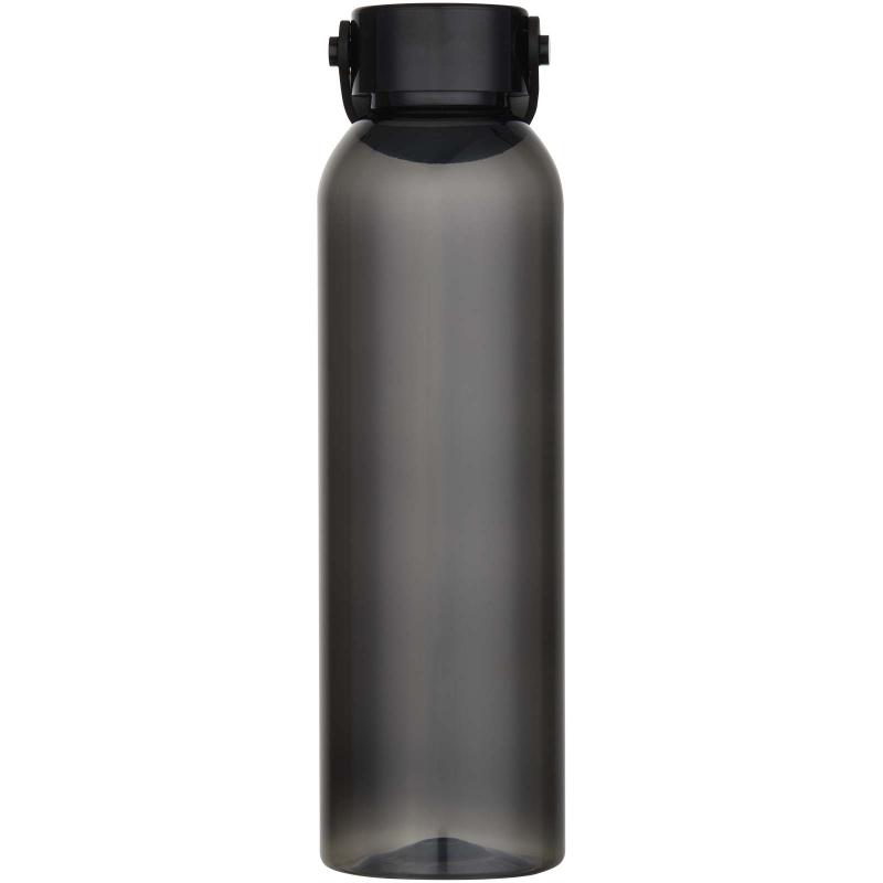 Water bottle made from RCS certified RPET, featuring a convenient silicone carry handle. In compliance with the EFSA approved PET recycling process. Volume capacity: 630 ml.