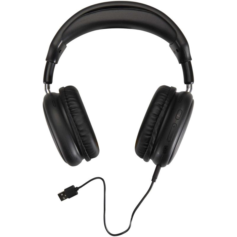 Combine style and performance with the Alzir Bluetooth® 6.0 wireless over-ear headset. Made from recycled plastic, it features a sleek design, built-in microphone, and easy-to-use control buttons. The headset offers up to 12 hours of talk or play time and recharges in just 1–2 hours. A 30 cm USB-A to Type-C charging cable is included.