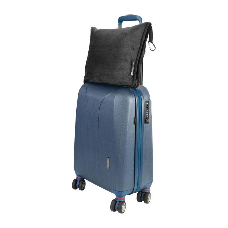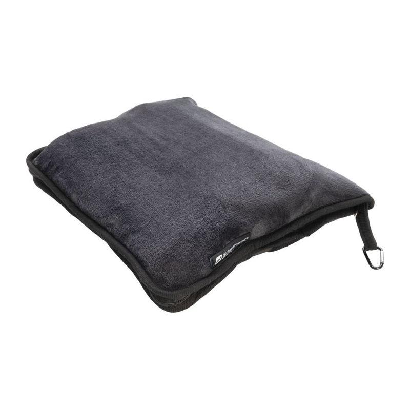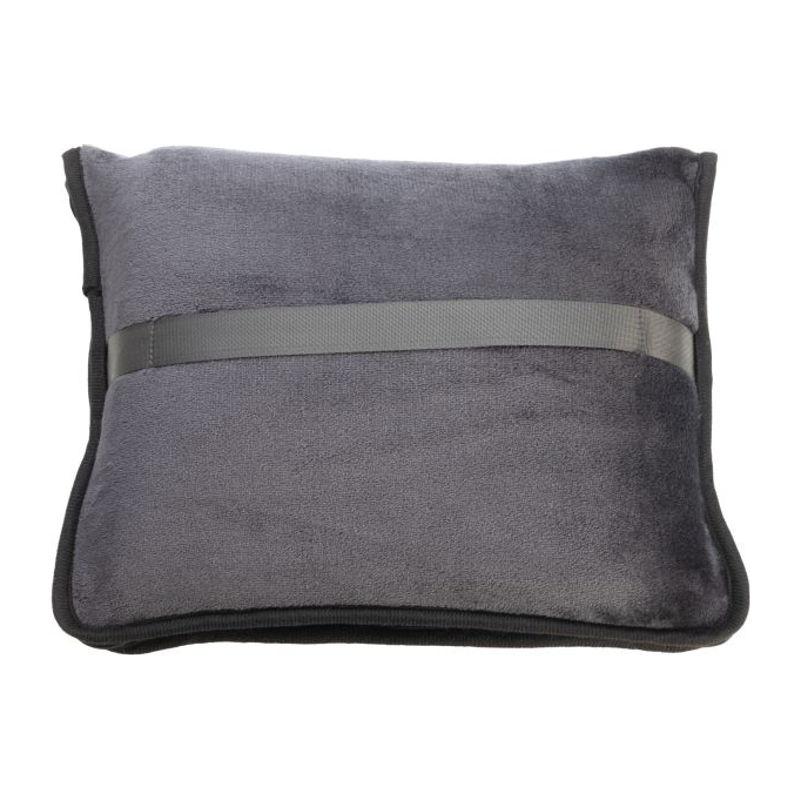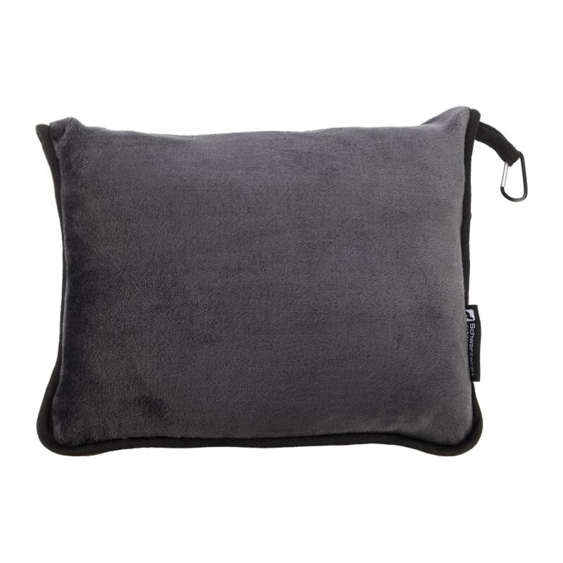 Schwarzwolf 2in1 fleece travel blanket that can be used as a blanket or folded into a cover made of the same material and turned it into a comfortable pillow. The blanket is made in dark gray and can be used during your travels or packed as a companion during camping. The cover for the folded blanket includes a carabiner for attaching to your luggage.