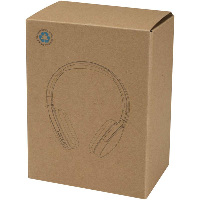 Enjoy immersive sound and all-day comfort with the Ancha Bluetooth® 5.3 wireless over-ear headset. Made from recycled plastic, it features a foldable design, built-in microphone, and easy-to-use control buttons. The headset offers up to 10 hours of play or talk time and recharges in just 1.5–2 hours. A 30 cm USB-A to Type-C charging cable is included.