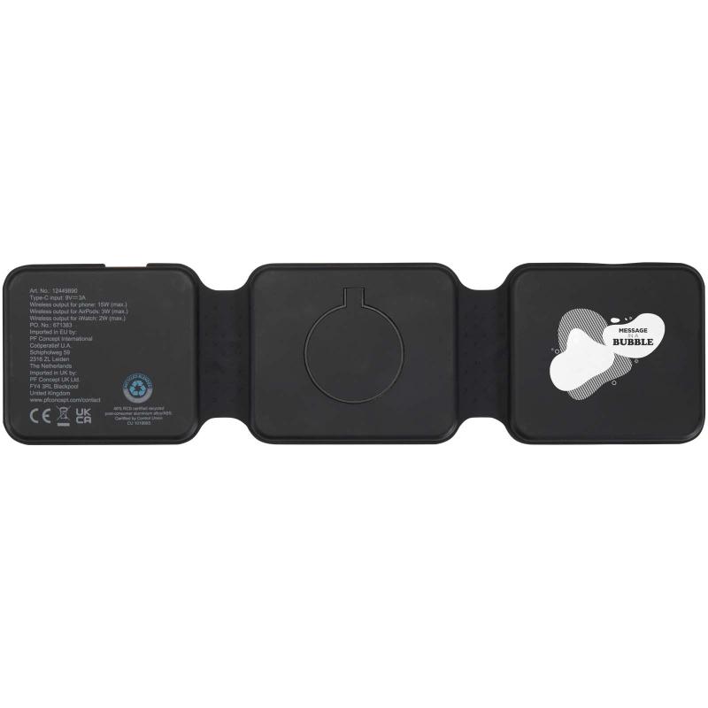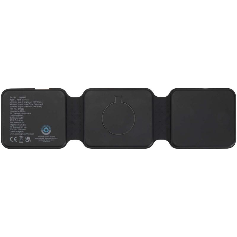The Armus 3-in-1 wireless charger is made from recycled plastic, and can power a smartphone, AirPods, and iWatch all at once, with up to 15W wireless charging speed. Its foldable, magnetic design lets you place your phone in landscape mode – perfect for watching while charging. Compatible with all wireless charging phones, including iPhone 12 and newer (or phones with a magnetic ring). Type-C connector included.
