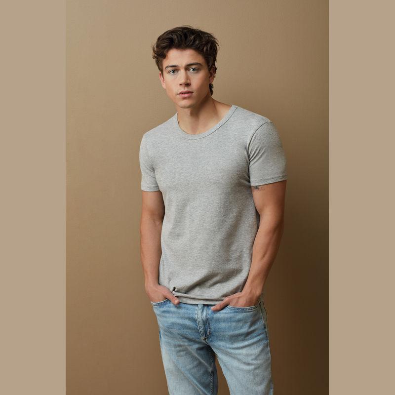 Classic cut T-shirt for men features collar with rib binding and made of durable single jersey cotton.