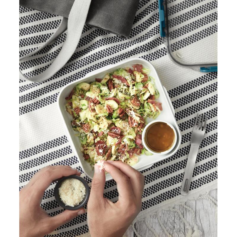 Inspired by the very first lunch box design from Black+Blum. Designed to look like a ceramic bowl, the Lunch Box Original includes an inner container as well as a leak-proof sauce pot with a garnish area in the lid, and a stainless-steel fork. Microwave and dishwasher safe, apart from tritan lid.