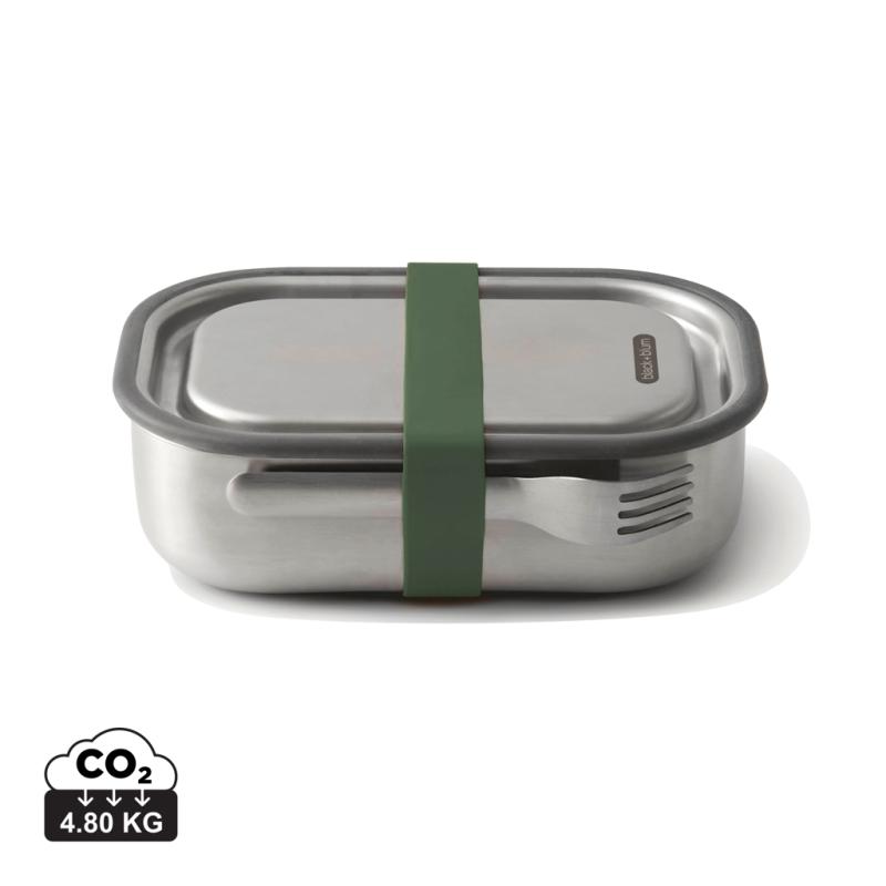 The first truly leak-proof stainless steel lunch box. It is a 3 in 1, multi-functional lunch box allowing you to transport your lunch, cook dishes in the oven, and even store pre-cooked meals in a freezer. Made from durable stainless steel, this design is perfect for carrying your culinary creations in style. It harks back to the vintage army or camping canteens of old, but has a modern, minimal feel that will age beautifully. The silicone valve creates a secure vacuum sealed closure, the slider divider allows you to separate the contents with ease, and the fork + holder are added for convenience. Dishwasher safe base+fork. Lid and strap are handwash only