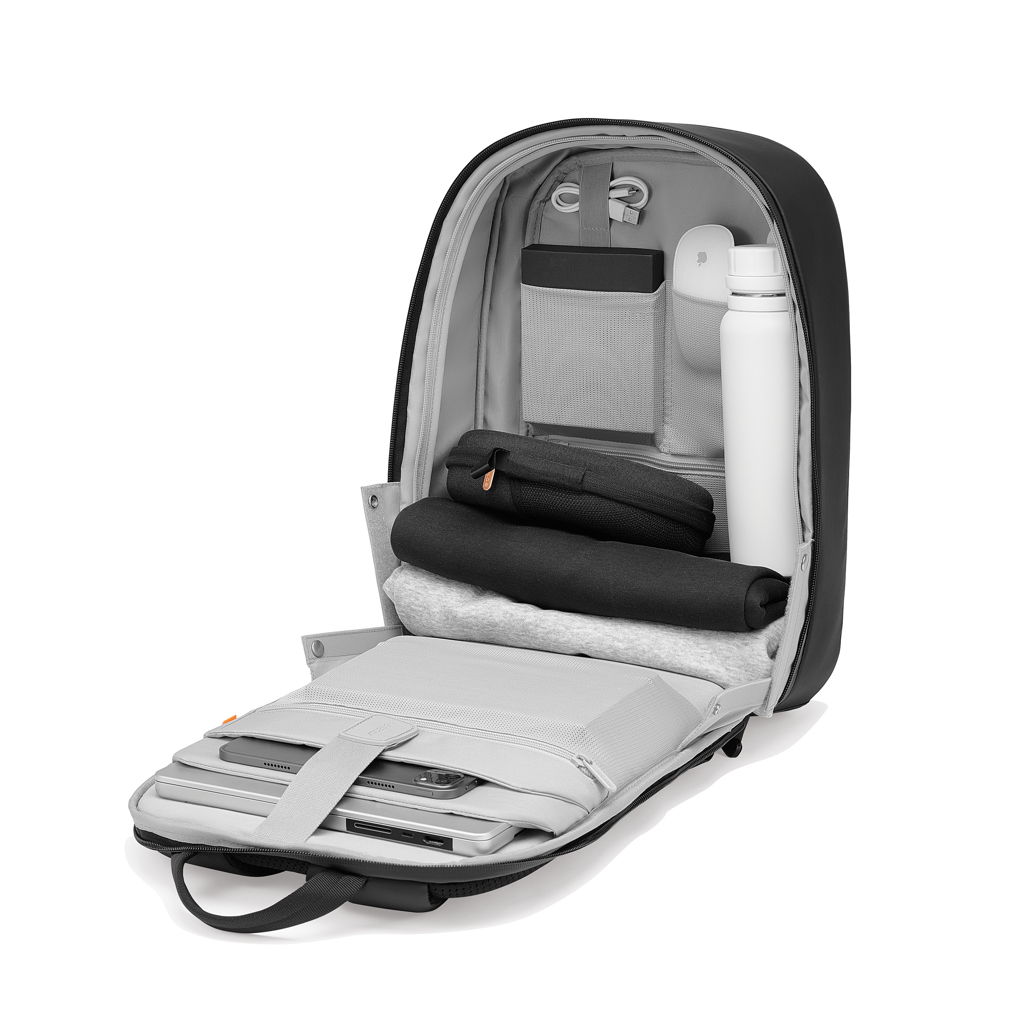 Experience modern design and enhanced security with the Bobby Edge. Engineered with an anti-theft design and a self-locking metal zipper puller, this backpack keeps your belongings safe. Its lightweight yet durable construction, along with a water-repellent exterior and waterproof zipper, ensures protection from the elements.Enjoy smart interior organisation for easy access to essentials. The addition of a discreet RFID-protected rear pocket and hidden tracking device pocket enhances convenience and security during your daily adventures. The Bobby Edge blends modern design with advanced security features, offering a stylish and protected journey for the modern explorer. Made from R-pet fabric with the AWARE™ tracer. With AWARE™, the use of genuine recycled fabric is guaranteed. 14% recycled content. Registered design®