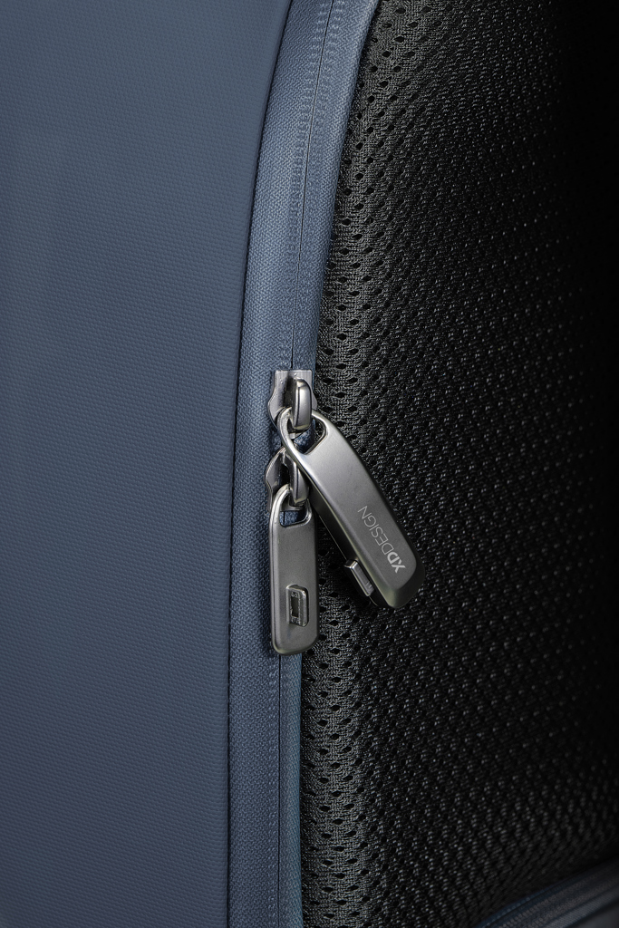 Experience modern design and enhanced security with the Bobby Edge. Engineered with an anti-theft design and a self-locking metal zipper puller, this backpack keeps your belongings safe. Its lightweight yet durable construction, along with a water-repellent exterior and waterproof zipper, ensures protection from the elements.Enjoy smart interior organisation for easy access to essentials. The addition of a discreet RFID-protected rear pocket and hidden tracking device pocket enhances convenience and security during your daily adventures. The Bobby Edge blends modern design with advanced security features, offering a stylish and protected journey for the modern explorer. Made from R-pet fabric with the AWARE™ tracer. With AWARE™, the use of genuine recycled fabric is guaranteed. 14% recycled content. Registered design®