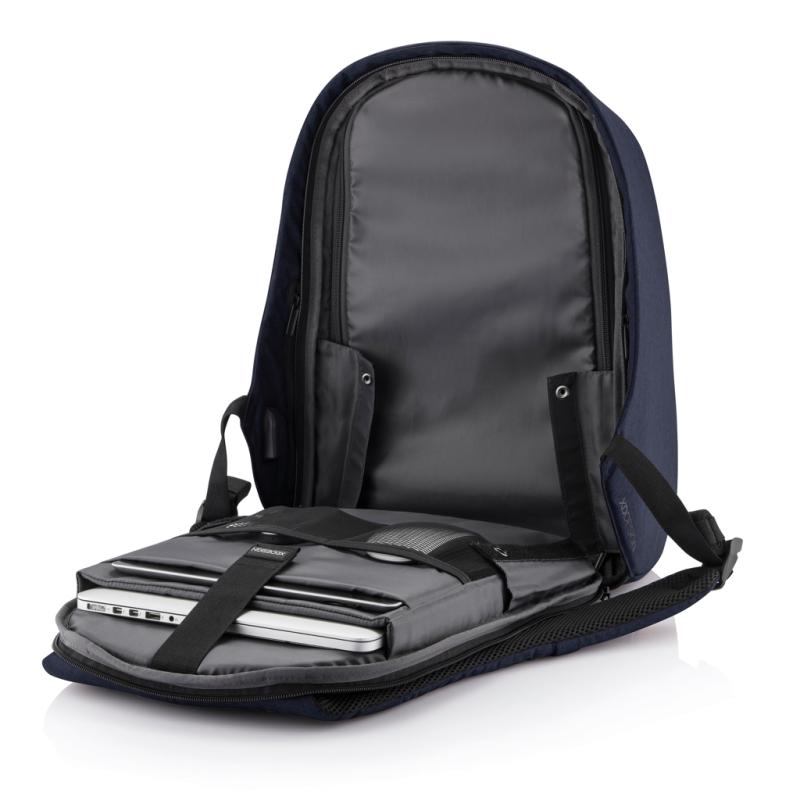 The Bobby Hero line represents a new era in anti-theft backpacks, offering safety, ease, and organisation for your daily journeys. Cut-proof protection, discreet zipper closures and concealed pockets ensure the security of your belongings during commutes. The Bobby Hero Regular is equipped with an integrated USB charging port, water-repellent fabric, illuminating safety strips and a luggage strap for added convenience. Internally, padded compartments cater to a 15.6” laptop and a tablet up to 12.9”. Made from R-pet fabric with the AWARE™ tracer. With AWARE™, the use of genuine recycled fabric is guaranteed. 29% recycled content. Registered design®