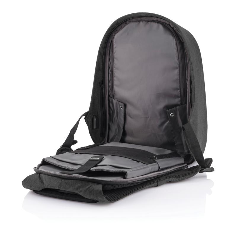 The Bobby Hero line represents a new era in anti-theft backpacks, offering safety, ease and organisation for your daily journeys. Cut-proof protection, discreet zipper closures and concealed pockets ensure the security of your belongings during commutes. The Bobby Hero XL is equipped with an integrated USB charging port, illuminating safety strips and a luggage strap for added convenience. Internally, padded compartments cater to a 17” laptop and a tablet up to 12.9”. Made from R-pet fabric with the AWARE™ tracer. With AWARE™, the use of genuine recycled fabric is guaranteed. 32% recycled content. Registered design®