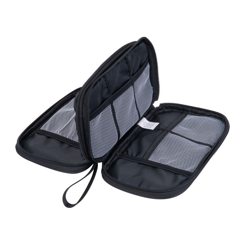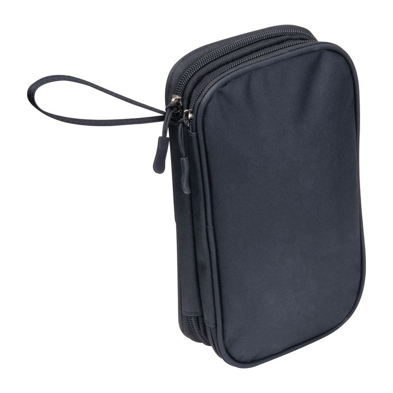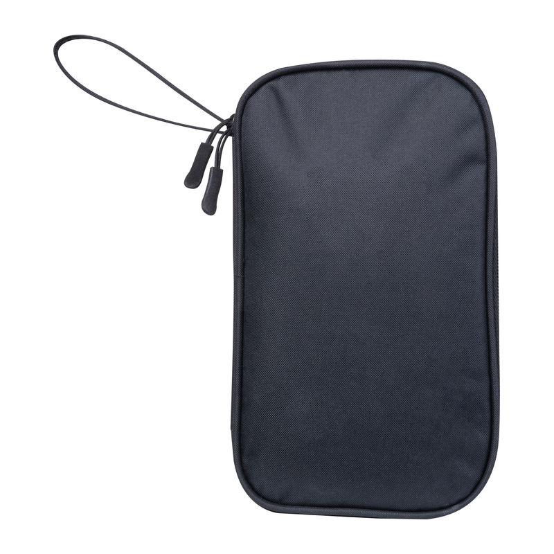Borseta de călătorie din poliester reciclat (RPET) cu multe buzunare interioare și fermoar.