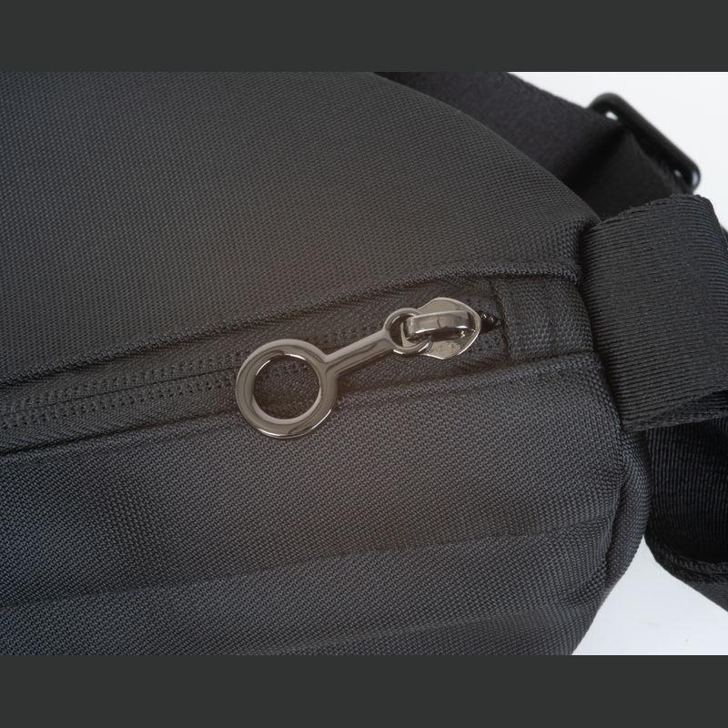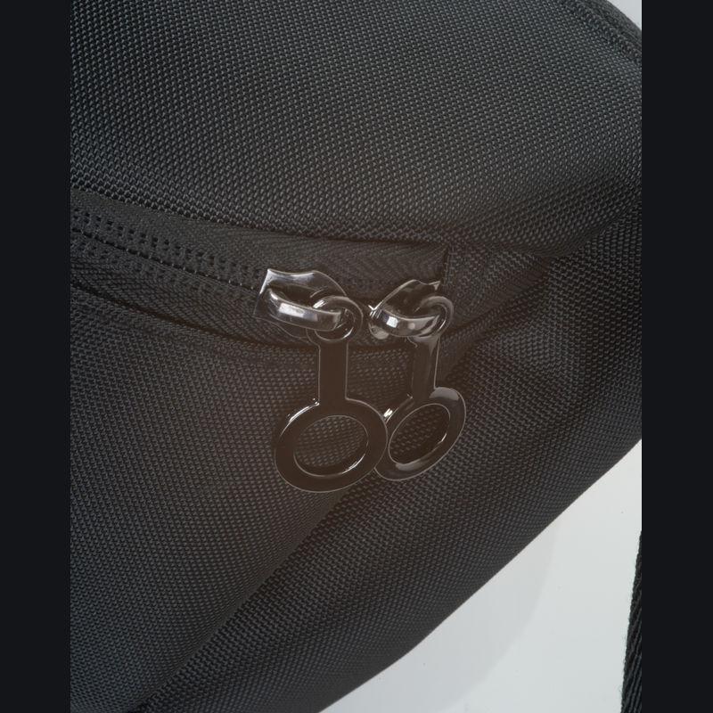 Borsetă Ferraghini din nailon cu detalii gun-metal și căptușeală neagră. Curea reglabilă până la 115 cm.