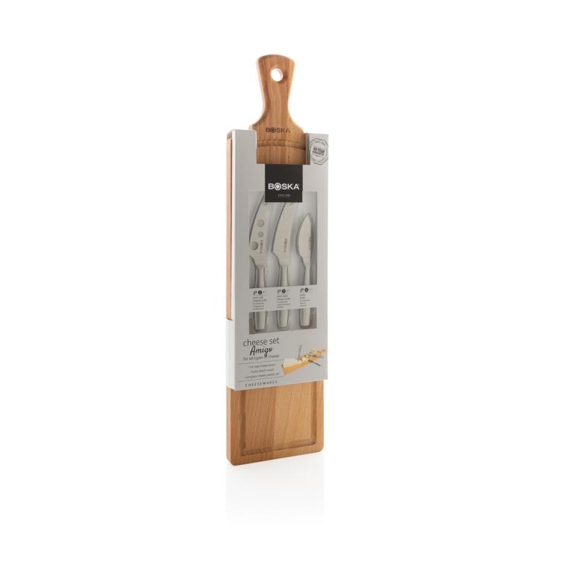 Treat your family and friends to the most delicious cheese boards with the Cheese Set Amigo from BOSKA – a B Corporation certified company. This complete set includes a beechwood serving board and three Copenhagen knives. The knives are lightweight, dishwasher-safe, and make the ideal cheese knives for any type of cheese. The board is only suitable for hand washing. Moreover, it comes with a 10 year guarantee.