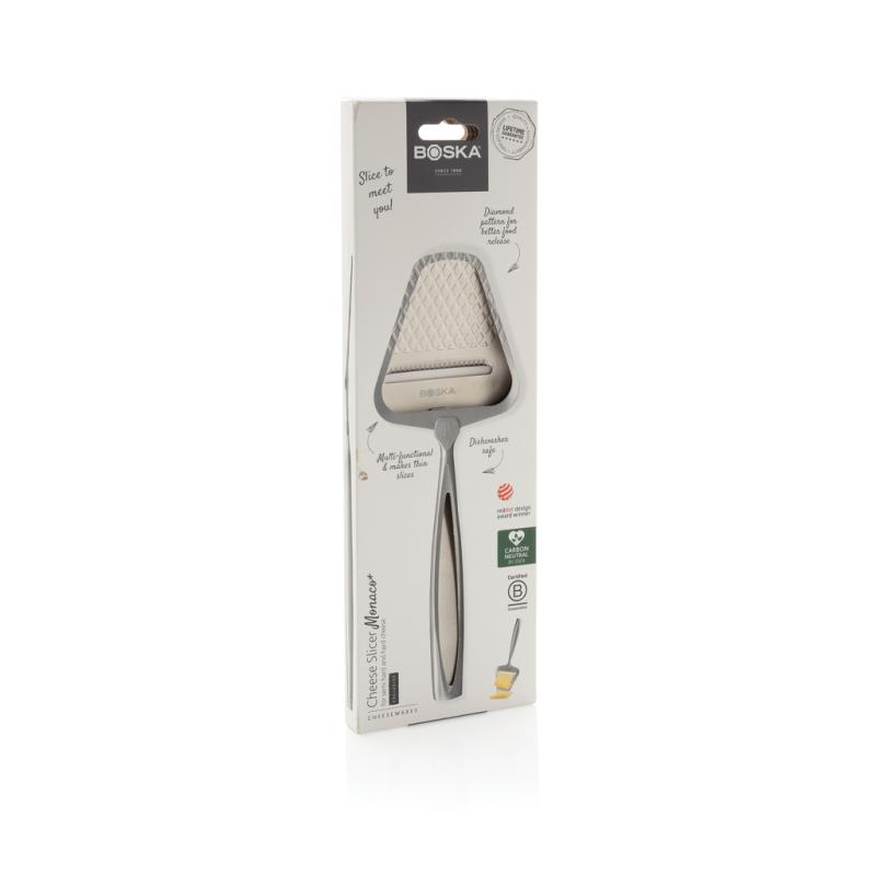 The Cheese Slicer Monaco+ is the true superstar, as far as cheese slicers go. This stainless steel slicer, from the brand BOSKA – a B Corporation certified company – is suitable for all types of cheese, dishwasher- and refrigerator-safe, and features a unique non-stick diamond pattern. Awarded the prestigious Red Dot Design Award and backed by a lifetime guarantee, this cheese slicer combines top-notch quality with style.