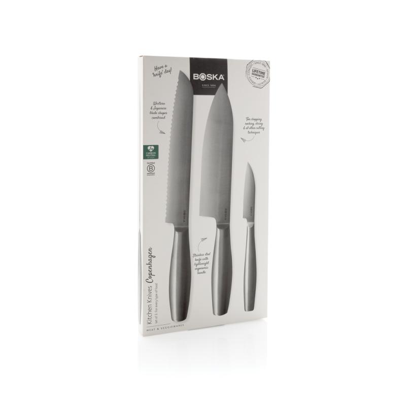 Cut any type of food with ease with the Kitchen Knives Copenhagen, from the brand BOSKA – a B Corporation certified company. A set of three sharp and essential knives with a unique design and made entirely of stainless steel. Lightweight, dishwasher safe and with an ergonomic handle tailored to different cutting techniques and foods. Made to last a lifetime!