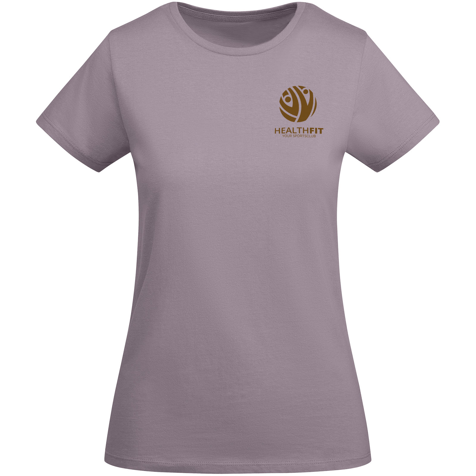 Fitted short-sleeve t-shirt for women in organic cotton. 1x1 ribbed crew neck. Reinforced covered seams in collar. Side seams. Removable label.
