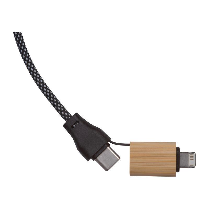 Cablu de încărcare rapidă 3 m (60W) cu conexiune USB-C, adaptor USB atașabil și ieșire USB-C. Cablu cu strat de protecție din PET pentru prevenirea deteriorării.