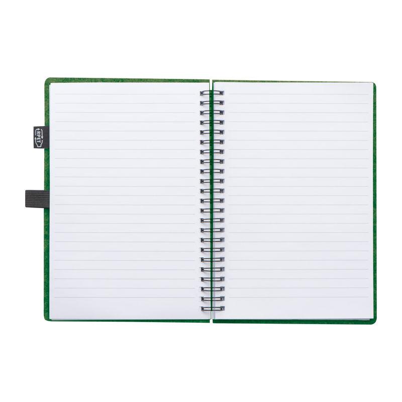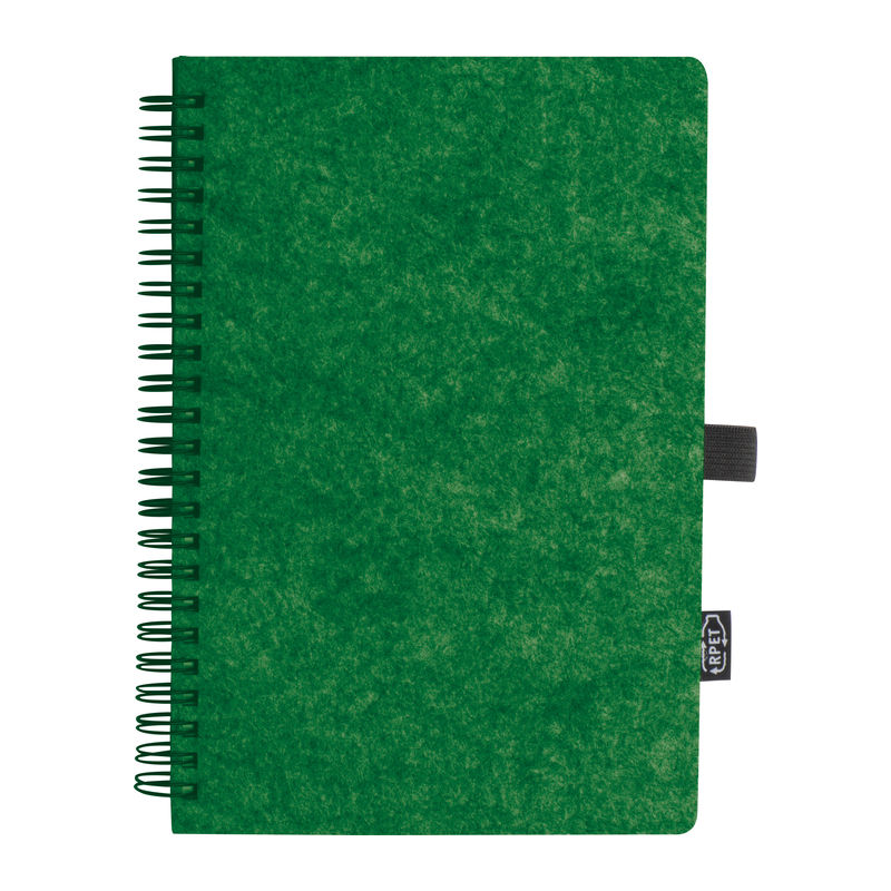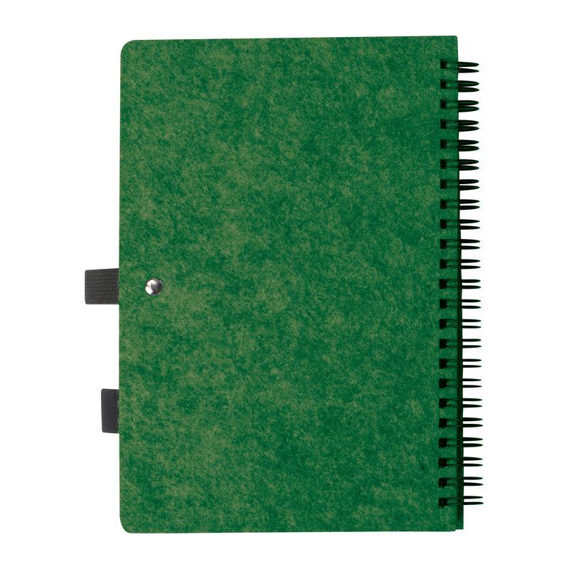 Caiet notes cu coperta din pâslă reciclată A5, cu 160 pagini din hârtie reciclată, liniate, legare cu spirală, buclă pentru pix, etichetă RPET.