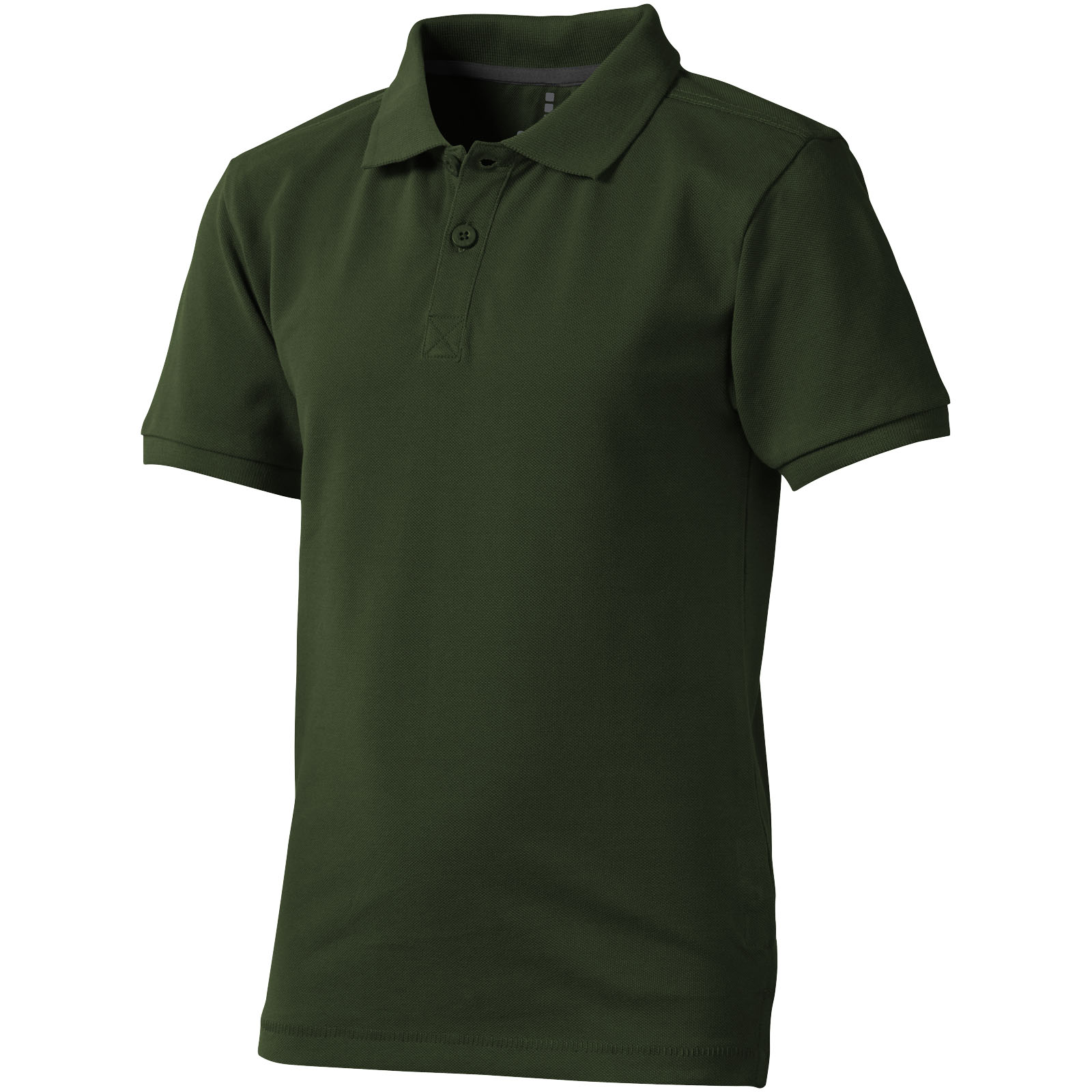Flat knit collar. Flat knit rib cuffs. Two button placket. Pick-Stitch details. Satin neck tape. Side slits with satin tape finishing. Half-moon . Forward shoulder seam with chain stitching. Dyed-to-match engraved buttons. Heat transfer main label for tagless comfort.