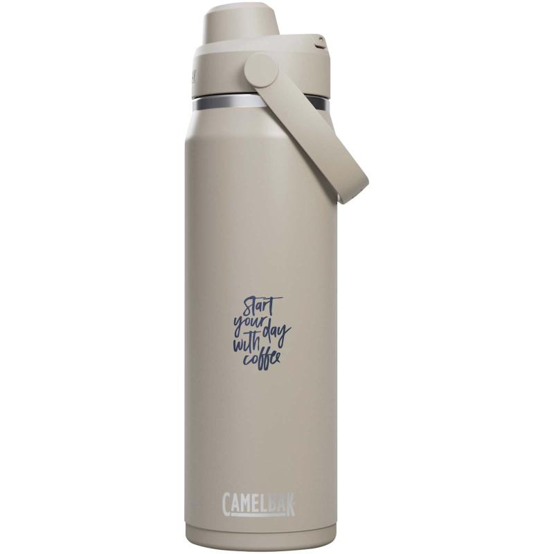 The Camelbak® Thrive Chug VSS (vacuum insulated stainless steel) water bottle offers an easy on-the-go hydration experience. It comes with and integrated bumper to protect against dents and to ensure a secure grip on nearly any surface. A strong and durable full powder coat finish keeps drinks tasting great, while the double-wall vacuum insulation keeps them hot or cold for hours. The new spout cap flips and automatically stays in open position – push it back and it stays in place. The easy close spout will make sure the bottle is 100% leak proof, while the new soft pivoting handle allows for the easy carry of the bottle. Volume capacity: 740 ml.