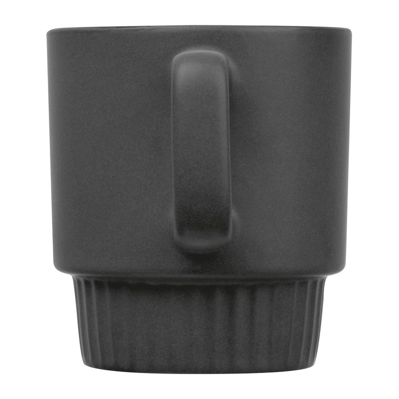 Pahar ceramic cu partea inferioară striată și o capacitate de 300 ml. Finisaj mat, confortabil de ținut în mână, ideal pentru băuturi calde.