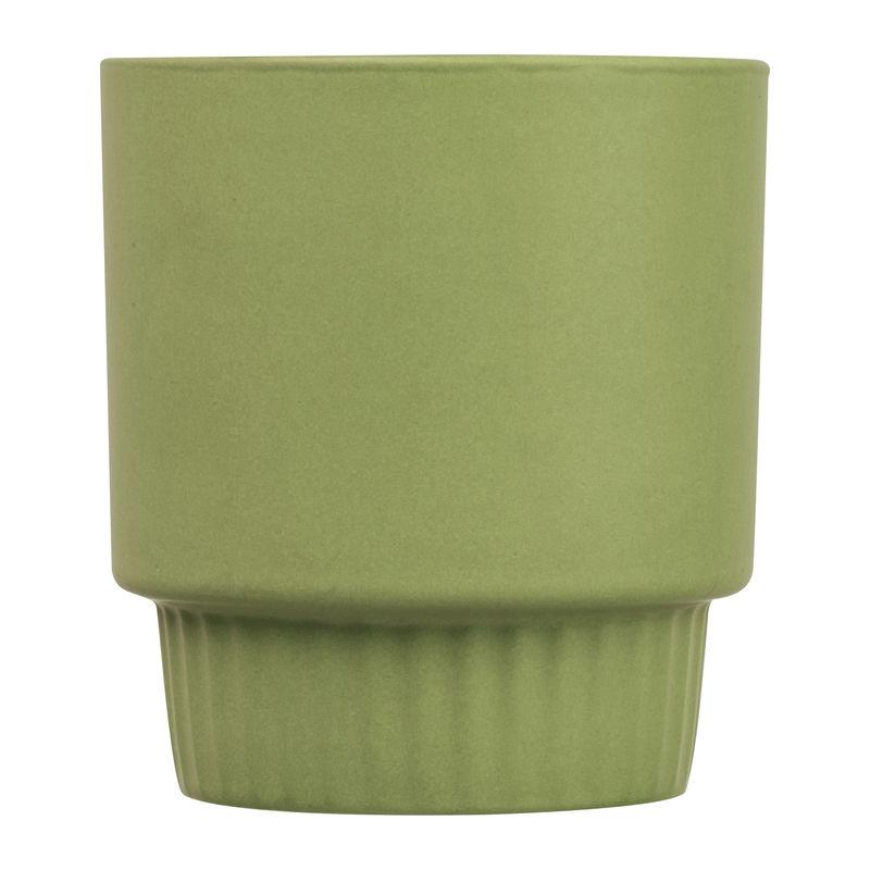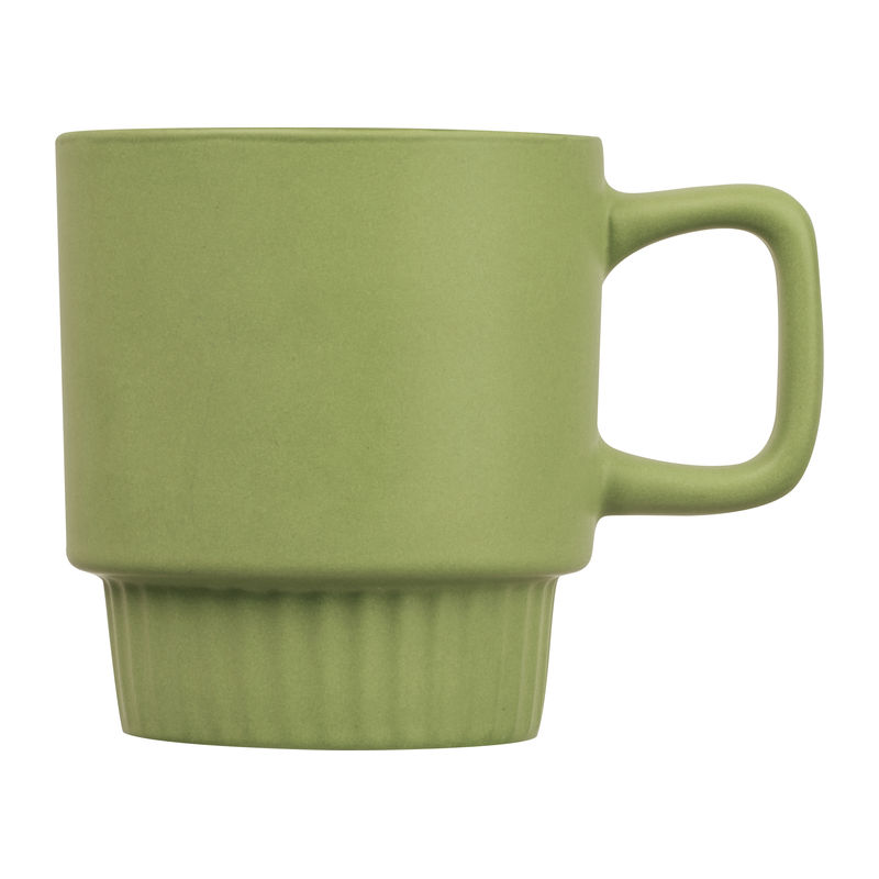 Pahar ceramic cu partea inferioară striată și o capacitate de 300 ml. Finisaj mat, confortabil de ținut în mână, ideal pentru băuturi calde.