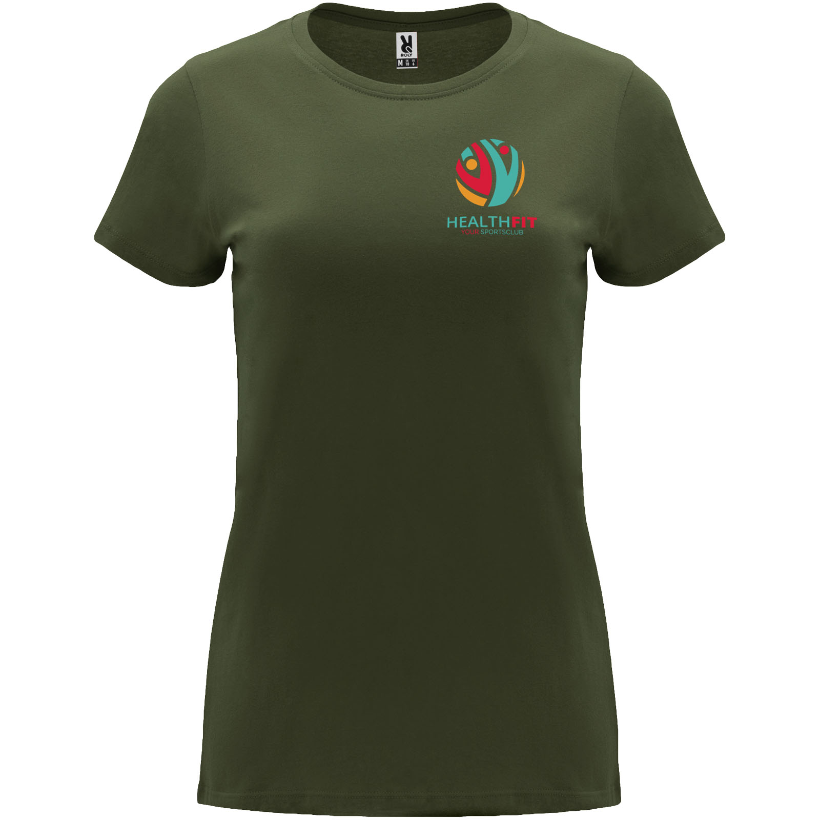Fitted short-sleeve t-shirt for women. 1x1 ribbed crew neck. Reinforced covered seams in collar. Removable label.