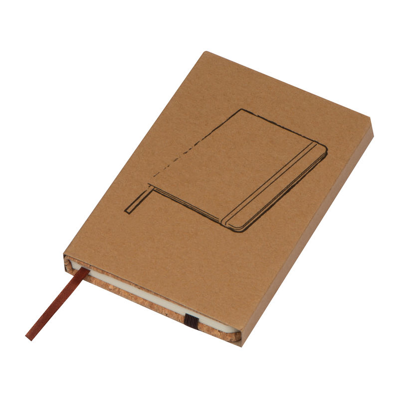 Caiet notes cu copertă din plută, format A6, cu 160 de pagini liniate, semn de carte şi şnur elastic pentru închidere.