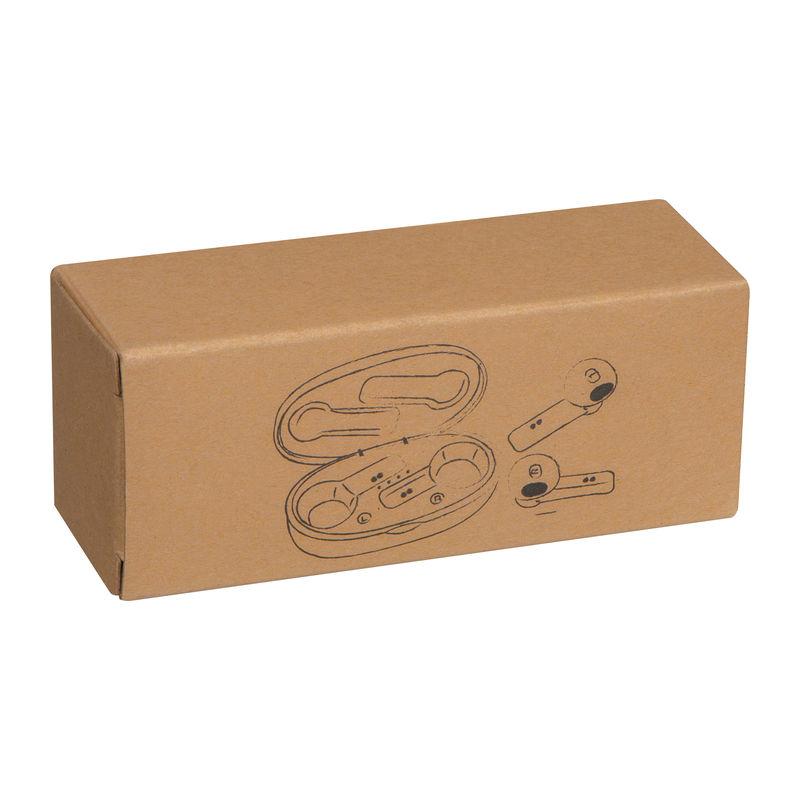 Headset in-ear Bluetooth 5.0 cu baterie de 250 mAh, indicator de încărcare, timp de încărcare de 1 oră, timp de funcţionare de aproximativ 2-3 ore și o rază de acţiune de aproximativ 10 m. Într-o carcasă cu decor din bambus și închidere magnetică.