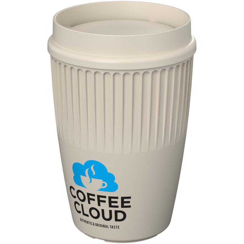 The Cirrus 350 ml tumbler with the unique 360° clip-on lid is a sophisticated and stylish single-walled drinking vessel featuring insulating ridges for safe and comfortable handling. The innovative 360° lid allows you to drink from any side of the cup, and enhances any drinking experience with a stronger aroma from your chosen beverage. Both the lid and vessel are made of fully recyclable plastics. Enjoy your favourite hot beverages in both comfort and style.