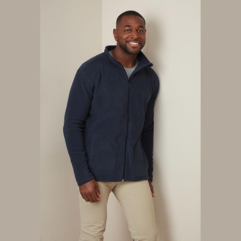 Lightweight and great heat-insulating properties, this men’s fleece jacket with stand-up collar made of breathable micro fleece makes a warm and soft intermediate layer. The hem is adjustable.