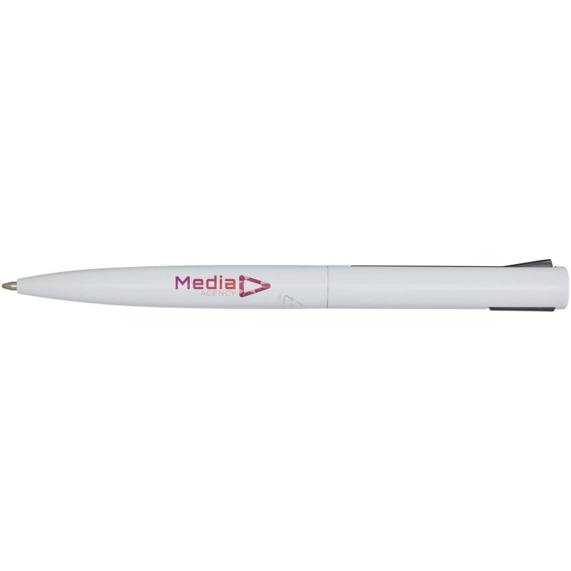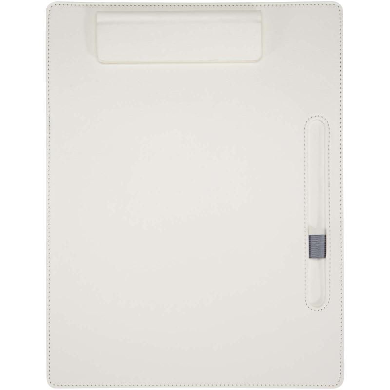 The Clast clipboard combines a sleek PU leather design with practical features for both meetings and everyday use. It fits standard A4 pages and includes a magnetic clip, stitched edges, and a built-in pen loop. Inside are 26 lined sheets of 65 g/m² paper along with a ballpoint pen made with a recycled plastic upper barrel and an RCS certified recycled aluminium lower barrel. The Juana ballpoint pen is also available separately. Clipboard size: 25.5 × 33 cm. Pen ink colour: black.