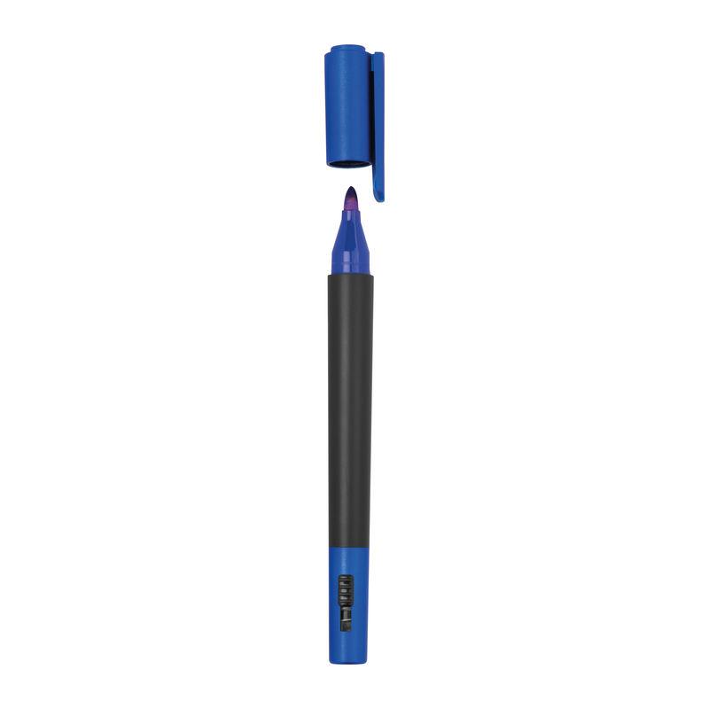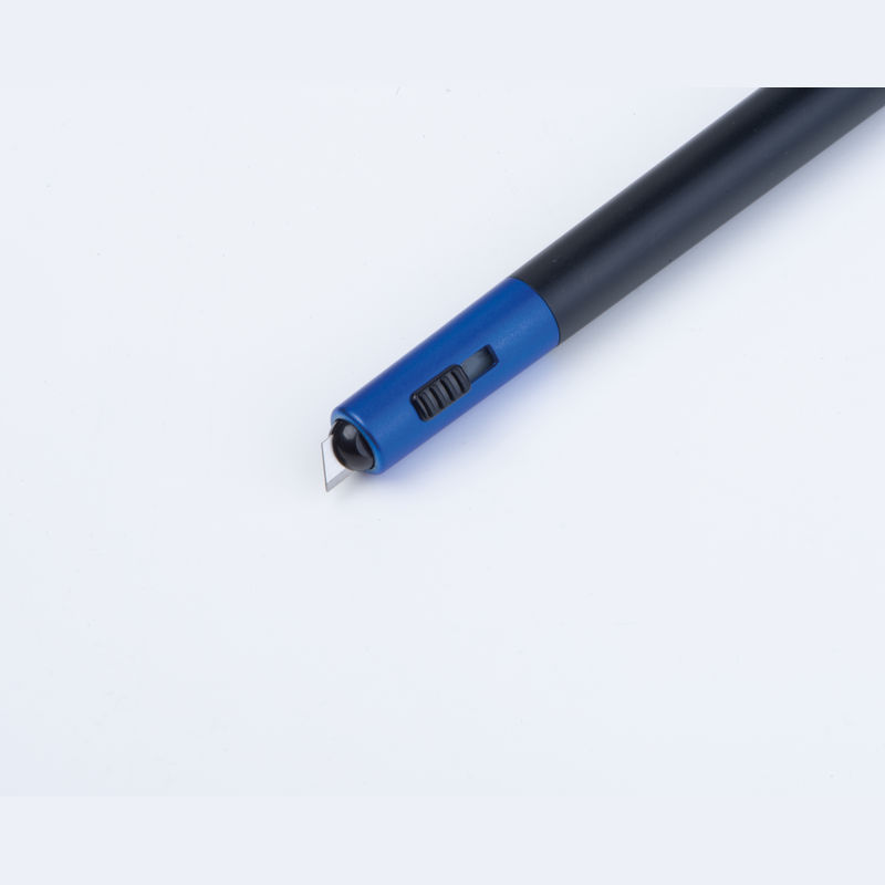 Cutter 2-în-1 cu cariocă, din plastic. Markerul scrie în culoarea capacului.