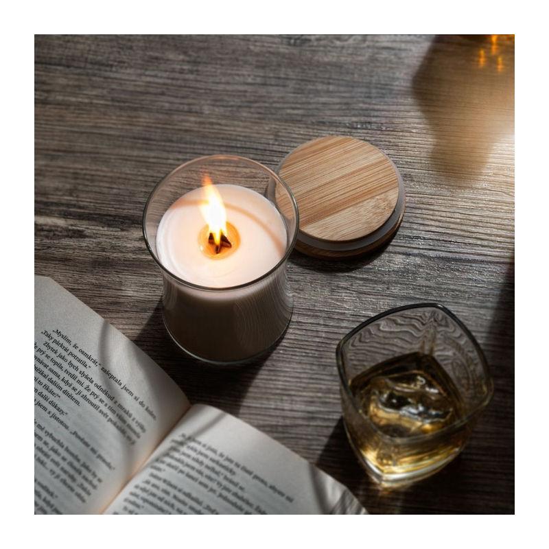 A luxurious scented candle with a pleasant scent of sandalwood and rose will be a beautiful addition to any home. The candle has a bamboo lid and it is made of soy wax (311 g) and borosilicate glass. Thanks to the double-crossed wooden wick, which is part of the candle, it resembles crackling wood in a fireplace when burning. The scent of the candle is released throughout the burning time. Burning time is 65–70 hours. Packed in a Vanilla Season gift box.
