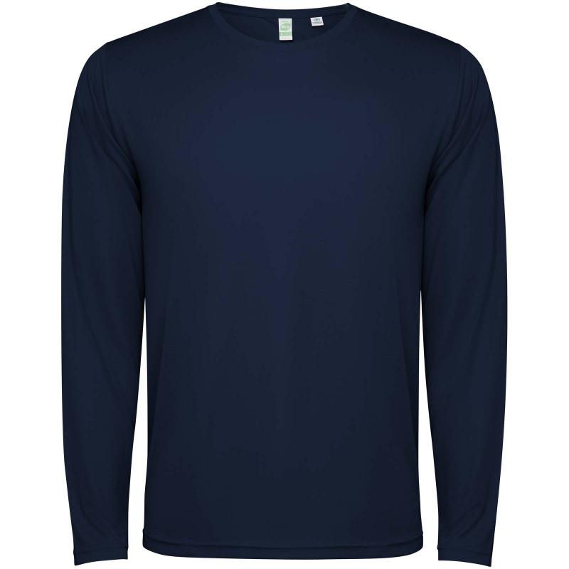 Kids long-sleeve unisex technical t-shirt. Collar with matching seams. Back hem slightly longer than the front. Side seams shifted forward.