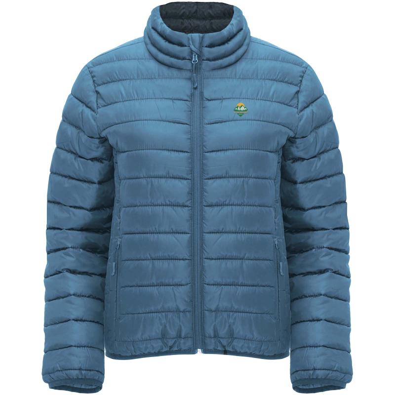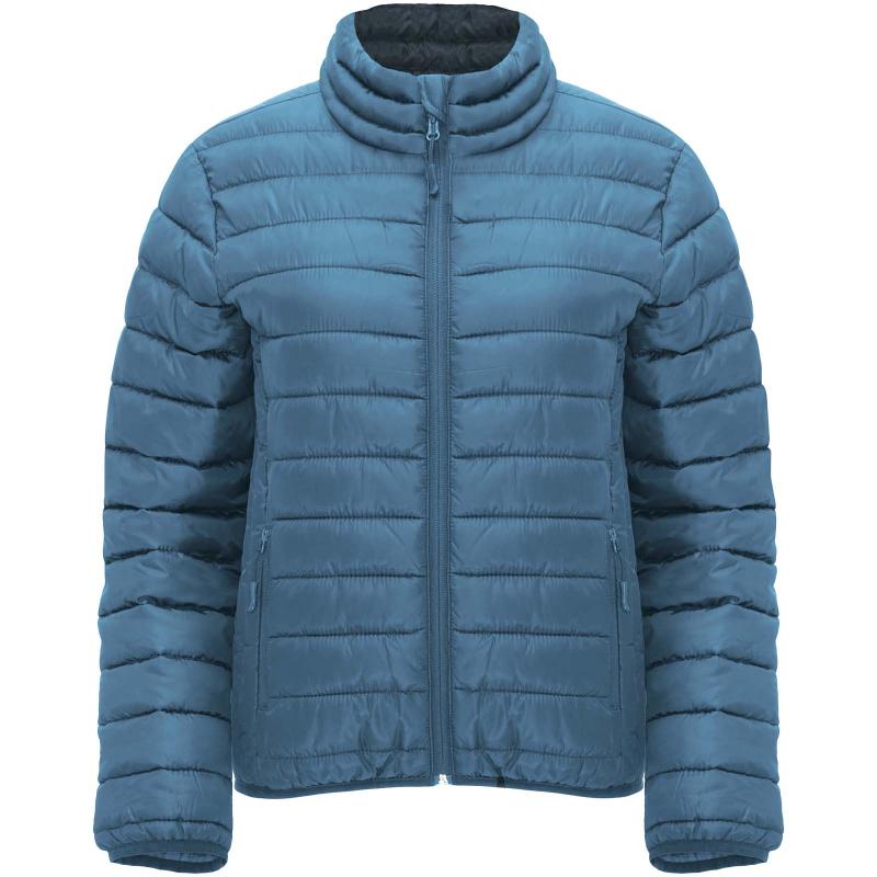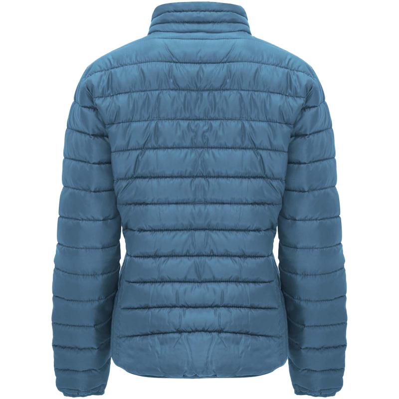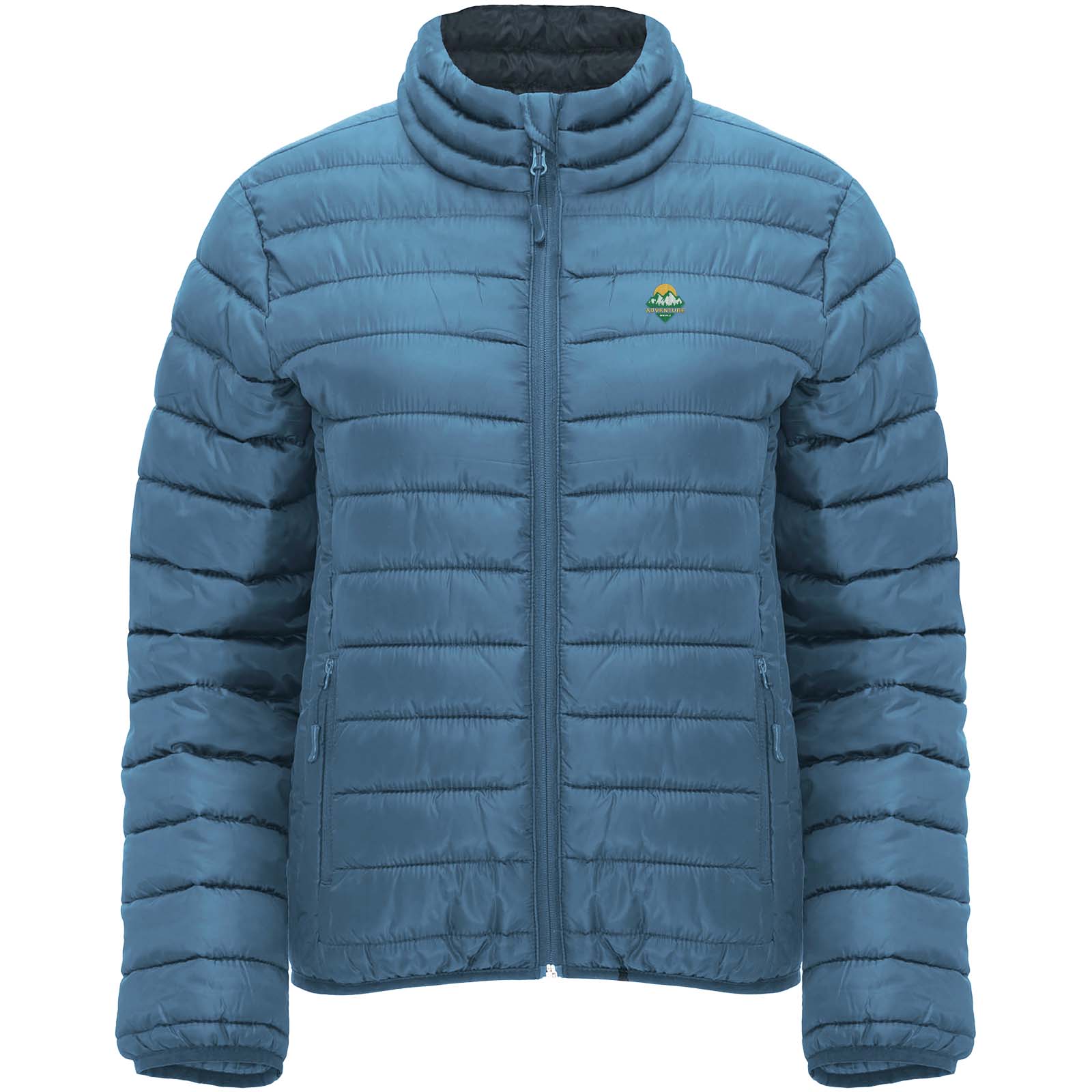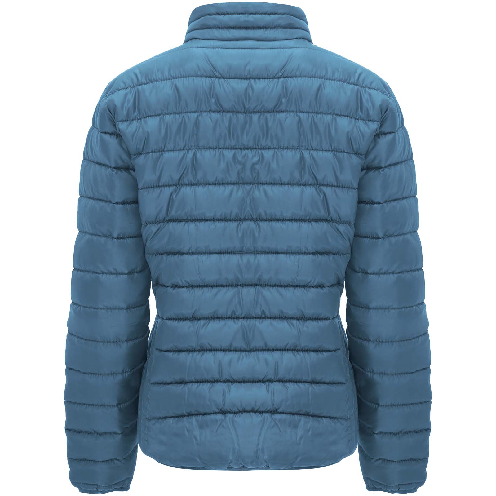 Women's quilted jacket with feather touch padding. Inverted zippers with matching chin protector and puller. Two front pockets with zippers. Matching elastic edging in collar, cuffs and hem. Contrasting inner lining. Includes stow carry bag. Lightweight and foldable garment. Fitted cut. Removable label. Water resistant. Wind-proof. The model is 179 cm and is wearing size S.