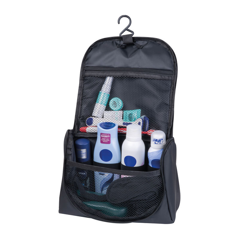 Geantă cosmetică practică din PU cu cârlig de agăare.