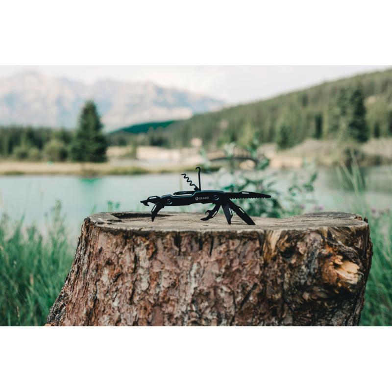 Straight clear lines combined with great functionality. This multifunctional tool combines it all, in one pocket sized essential. The luxury aluminum body is matched with premium grade 420 stainless steel tools all presented in black. The 13 functions include: Knife, saw, slotted screwdriver, can opener, file, small Philips screwdriver, Philips screwdriver, corkscrew, thread guide, leather punch, box cutter, bottle opener and small blade. This multifunctional knife is ready for use when you need it. Packed in luxury gift box.