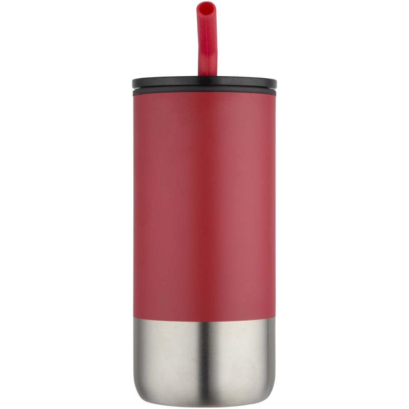 Featuring a double-walled insulated design, this tumbler comes with a recycled stainless steel straw topped with a silicone tip for comfortable use. The inner wall is made from PP plastic, while the outer wall is crafted from RCS-certified recycled stainless steel. A sliding lid made from PS and ABS plastic, combined with a matte coating, gives the tumbler a sleek finish. Volume capacity: 480 ml.