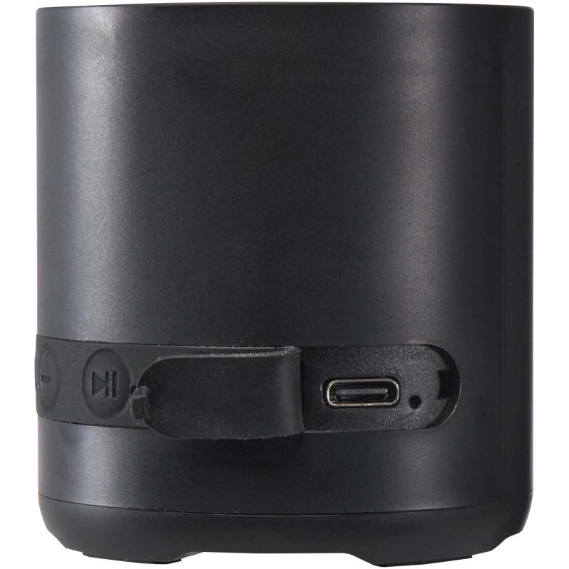 The Hunor 3W wireless Bluetooth® speaker is made from recycled plastic, and features a Type-C charging port, volume controls, a Play/Pause/Call button, and a built-in microphone. Thanks to the TWS (True Wireless Stereo) functionality, you can pair two speakers for a stereo sound experience.