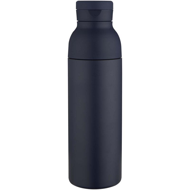 This gift set includes a 650 ml double-walled, vacuum-insulated bottle made from RCS certified stainless steel with copper plating for enhanced temperature retention. The bottle is compatible with three interchangeable lids included in the set. Lid 1 features a discreet built-in silicone handle for easy carrying. Lid 2 is a sports lid with a flip-top drinking spout and straw. Lid 3 has a convenient stainless steel push-top opening, allowing for one-handed use. The set is presented in a recycled cardboard gift box, making it a practical and thoughtful gift.