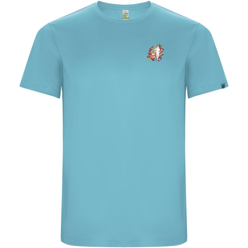 Technical short-sleeve t-shirt in recycled CONTROL-DRY polyester. Crew neck with matching covered seams. ECO logo label on sleeve. Packing in recycled material. Removable ECO label. Packing in recycled material. Technical fabric. The model is 115 cm and is wearing size 5/6.