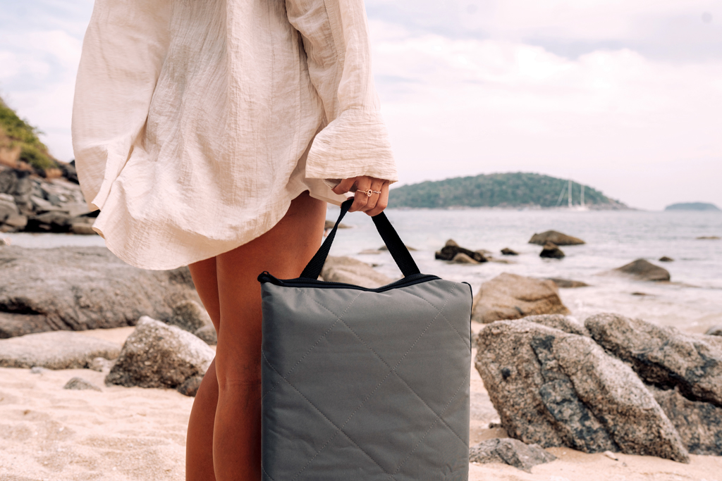 This beautiful quilted picnic blanket features 100% recycled PET materials. The large pocket on the front displays your logo proud and will make carrying your essentials a breeze. The blanket measures 145 x130 cm unfolded. Incorporating the AWARE™ tracer that validates the genuine use of recycled materials. 2% of proceeds of each Impact product sold will be donated to Water.org.