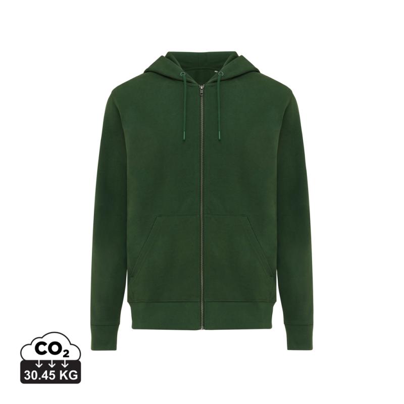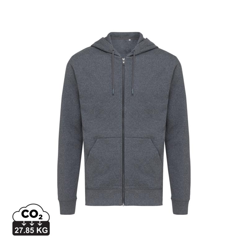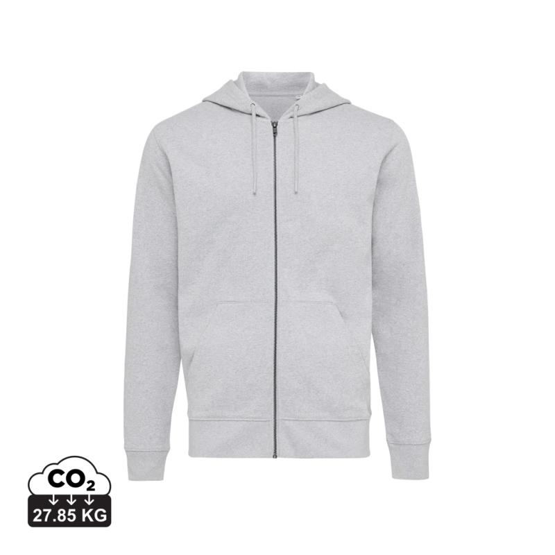 Unisex modern fit zip through hoodie made from 100% cotton, of which 50% is recycled and 50% organic, in 340 G/M². The zip through hoodie has a double-layered hood, long sleeves and 1x1 rib. The inside is soft-brushed fleece for extra comfort. The use of genuine recycled & organic fabric materials and environmental impact claims are guaranteed, by using the AWARE™ disruptive physical tracer and blockchain technology. By scanning the QR code, you will gain access to a dedicated digital passport of the product. 2% of proceeds of each sold product will be donated to Water.org. This product is OEKO-TEX® STANDARD 100 Centexbel certified. Due to the nature of recycled yarns, impurities and colour variations may appear