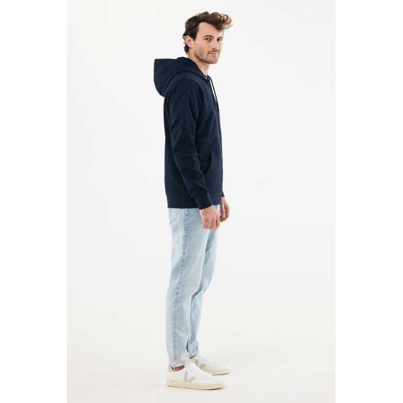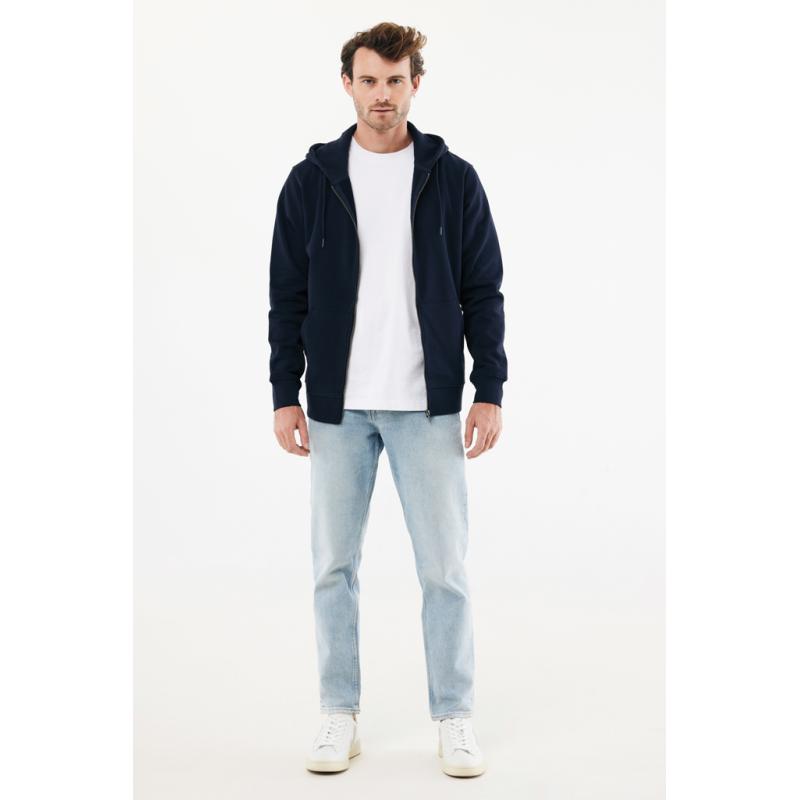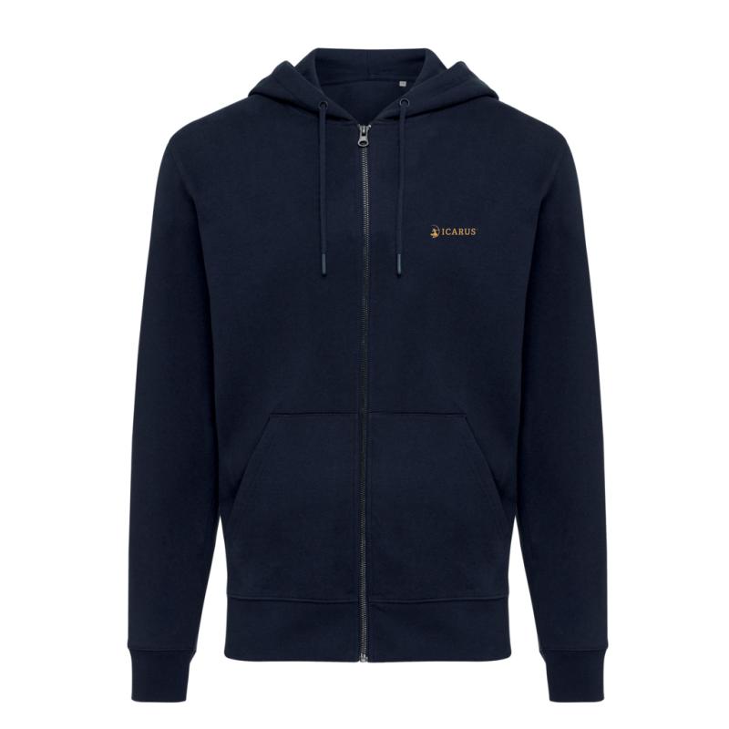 Unisex modern fit zip through hoodie made from 100% cotton, of which 50% is recycled and 50% organic, in 340 G/M². The zip through hoodie has a double-layered hood, long sleeves and 1x1 rib. The inside is soft-brushed fleece for extra comfort. The use of genuine recycled & organic fabric materials and environmental impact claims are guaranteed, by using the AWARE™ disruptive physical tracer and blockchain technology. By scanning the QR code, you will gain access to a dedicated digital passport of the product. 2% of proceeds of each sold product will be donated to Water.org. This product is OEKO-TEX® STANDARD 100 Centexbel certified. Due to the nature of recycled yarns, impurities and colour variations may appear