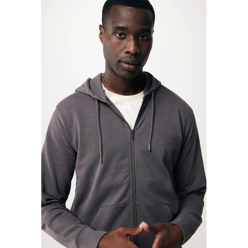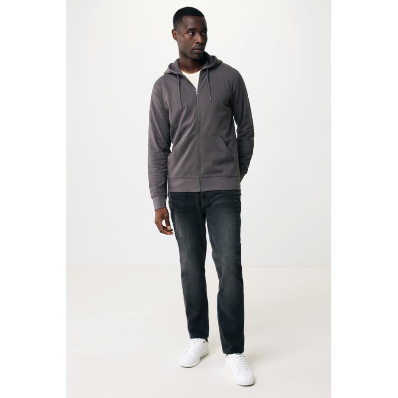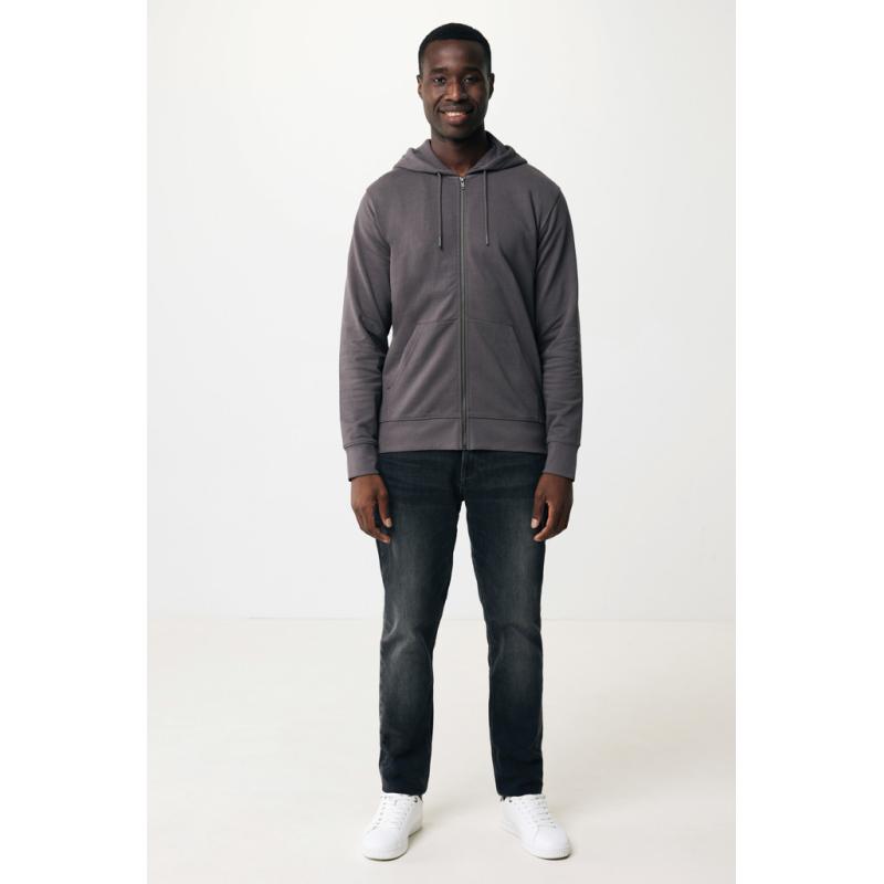 Unisex modern fit zip through hoodie made from 100% cotton, of which 50% is recycled and 50% organic, in 340 G/M². The zip through hoodie has a double-layered hood, long sleeves and 1x1 rib. The inside is soft-brushed fleece for extra comfort. The use of genuine recycled & organic fabric materials and environmental impact claims are guaranteed, by using the AWARE™ disruptive physical tracer and blockchain technology. By scanning the QR code, you will gain access to a dedicated digital passport of the product. 2% of proceeds of each sold product will be donated to Water.org. This product is OEKO-TEX® STANDARD 100 Centexbel certified. Due to the nature of recycled yarns, impurities and colour variations may appear