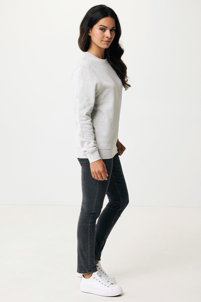 Unisex modern fit crew neck made from 100% cotton, of which 70% is organic and 30% recycled, 280 G/M². The crewneck has long sleeves and 1x1 rib at neckline, cuffs and bottom hem. The inside is soft-brushed fleece for extra comfort. The use of genuine recycled & organic fabric materials and environmental impact claims are guaranteed, by using the AWARE™ disruptive physical tracer and blockchain technology. By scanning the QR code, you will gain access to a dedicated digital passport of the product. 2% of proceeds of each sold product will be donated to Water.org. This product is OEKO-TEX® STANDARD 100 Centexbel certified. Due to the nature of recycled yarns, impurities and colour variations may appear.