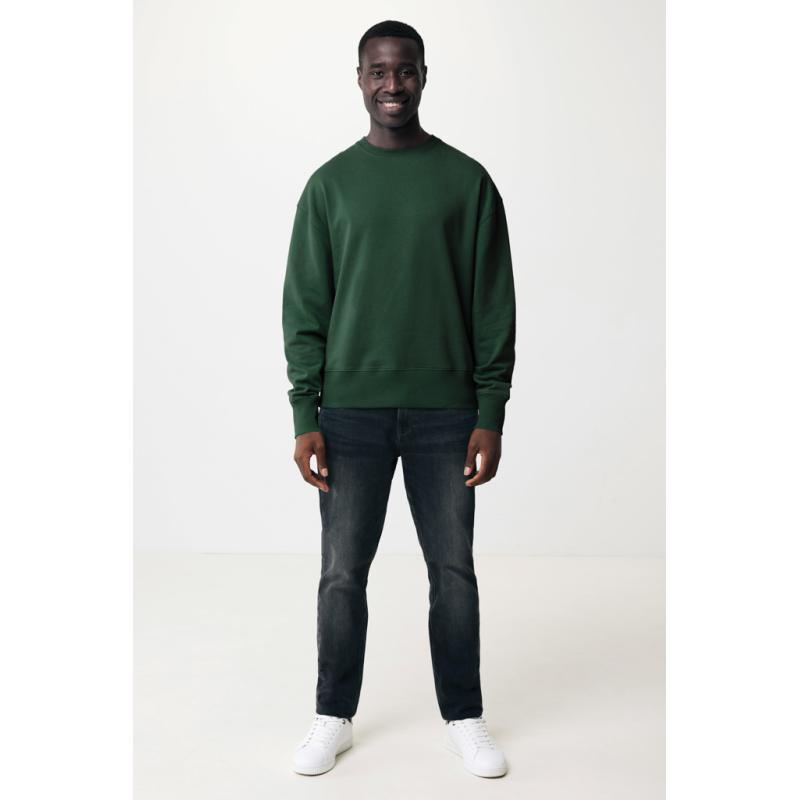Unisex relaxed fit crew neck made from 100% cotton, of which 50% recycled and 50% organic, in 340 G/M². The sweater has dropped shoulders, a round neckline, wider long sleeves and 2x2 rib. The inside is soft-brushed fleece for extra comfort. The use of genuine recycled & organic fabric materials and environmental impact claims are guaranteed, by using the AWARE™ disruptive physical tracer and blockchain technology. By scanning the QR code, you will gain access to a dedicated digital passport of the product. 2% of proceeds of each product sold will be donated to Water.org. This product is OEKO-TEX® STANDARD 100 Centexbel. certified. Due to the nature of recycled yarns, impurities and color variations may appear.