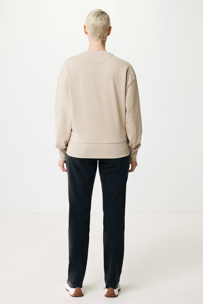 Unisex relaxed fit crew neck made from 100% cotton, of which 50% recycled and 50% organic, in 340 G/M². The sweater has dropped shoulders, a round neckline, wider long sleeves and 2x2 rib. The inside is soft-brushed fleece for extra comfort. The use of genuine recycled & organic fabric materials and environmental impact claims are guaranteed, by using the AWARE™ disruptive physical tracer and blockchain technology. By scanning the QR code, you will gain access to a dedicated digital passport of the product. 2% of proceeds of each product sold will be donated to Water.org. This product is OEKO-TEX® STANDARD 100 Centexbel. certified. Due to the nature of recycled yarns, impurities and color variations may appear.