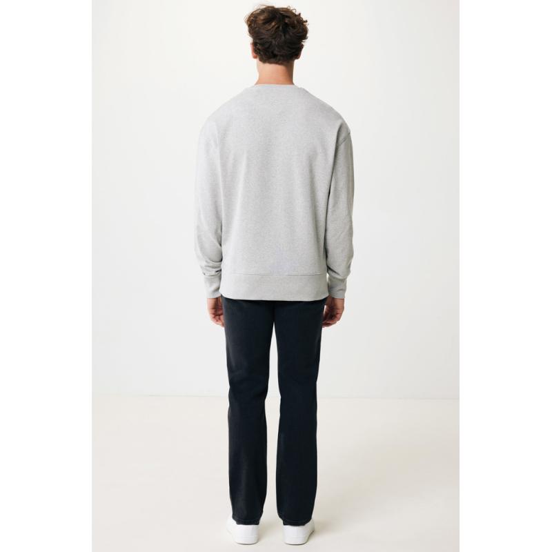 Unisex relaxed fit crew neck made from 100% cotton, of which 50% recycled and 50% organic, in 340 G/M². The sweater has dropped shoulders, a round neckline, wider long sleeves and 2x2 rib. The inside is soft-brushed fleece for extra comfort. The use of genuine recycled & organic fabric materials and environmental impact claims are guaranteed, by using the AWARE™ disruptive physical tracer and blockchain technology. By scanning the QR code, you will gain access to a dedicated digital passport of the product. 2% of proceeds of each product sold will be donated to Water.org. This product is OEKO-TEX® STANDARD 100 Centexbel. certified. Due to the nature of recycled yarns, impurities and color variations may appear.